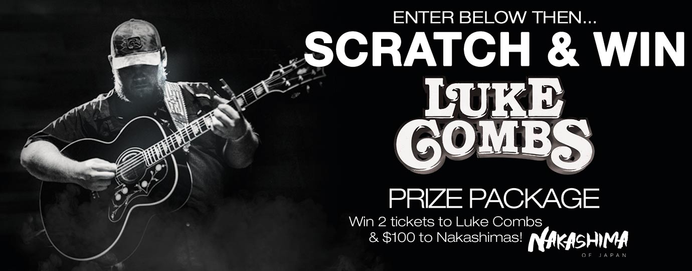 5. Prizes: The Winner(s) of the Campaign (the “Winner”) will two tickets to Luke Combs and $100 to Nakashima of Japan. This prize package is valued at over $200+. Subject to availability of the facility. Actual/appraised value may differ at time of prize award. The specifics of the prize shall be solely determined by PMI Entertainment Group, Inc. Prizes are not transferable, cannot be redeemed for cash, and cannot be substituted for other items. Any and all prize-related expenses, including without limitation any and all federal, state, and/or local taxes, shall be the sole responsibility of Winner. Acceptance of prize constitutes permission for PMI Entertainment Group, Inc. to use Winner’s name, likeness, and entry for purposes of advertising and trade without further compensation, unless prohibited by law.