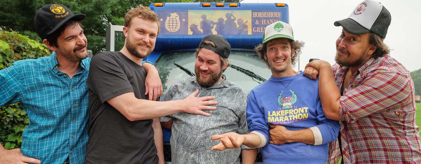 To celebrate fifteen years of making music together, Horseshoes & Hand Grenades will release their 8th studio album "Living Room" in January of 2026. Their very first album was recorded in the living room of their college house in Stevens Point. They used a Peavey mixing board that gave them splinters and an old Boss digital recorder. They pieced together equipment, hung some quilts on the windows, and did what came naturally in the Nut House—had a good time. For their new album, they decided to go back into the living room and record at Adam's house in the hill country of Wisconsin. The record again features tracks written by each member, and that good ol' fun loving energy that fans have come to know and love!